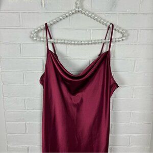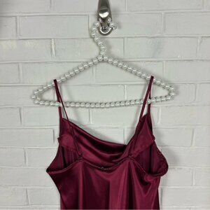 Vintage Bebe Red Maroon Satin Cowl Neck Midi Dress Size M