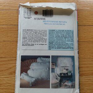 Vintage Bedroom Sewing Pattern Ruffle Duvet Cover, Curtain, Pillow Case Neckroll