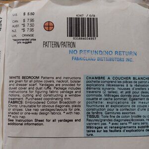 Vintage Bedroom Sewing Pattern to make Ruffled Duvet Cover, Window Curtains, Pillow Covers, Neckroll, Bolster and Dresser Scarf.