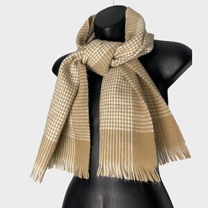 Vintage Beige Plaid Knit Scarf