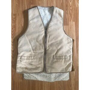 Vintage Beige Sherpa Lined Canvas Work Vest Size L