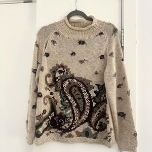 Stay cozy and stylish with this beautifully designed paisley patterned sweater. The beige color adds a touch of elegance to your wardrobe. Great condition. Xs but fits a small.