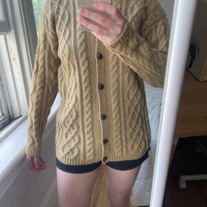 Vintage Beige Tan Cable Knit Sweater Cardigan Button Up Wool Coastal Top Sz M/L