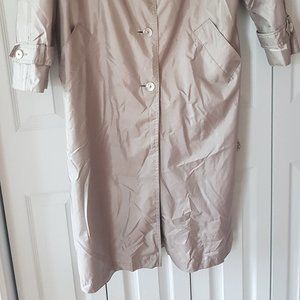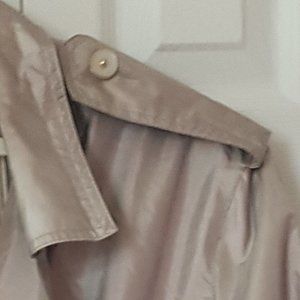 This is a vintage trenchcoat from the early 90s, which has a shell of polyester and a nylon lining, meaning that it is water resistant, not waterproof. It is from the Canadian brand Nuage, based out of St. Laurent, Quebec. The tag reads size 8/10, which would give a slightly oversized fit on a medium frame woman. This coat has all the features, button closure, pockets, flaps, and breathable back. It has hardly been worn and is in great condition considering the outerwear of that period. It's giving detective, so if you're into solving crime, this is the jacket to close the case!