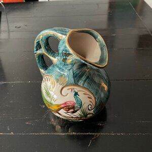 Vintage Belgium CeramicJug Pitcher hand painted peacock