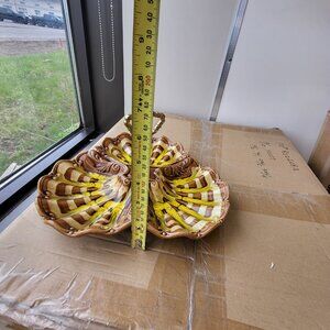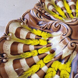This vintage Belgo Canadian Pottery serving tray from the 1960s features a mid-century design in mixed colors with a brown ceramic material. The set includes one original tray made in Canada using pottery production technique. The brand Belgo Pottery is known for its unique and quality craftsmanship, making this piece a charming addition to any collection of decorative cookware, dinnerware, and serveware.
