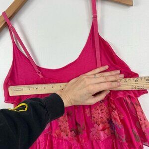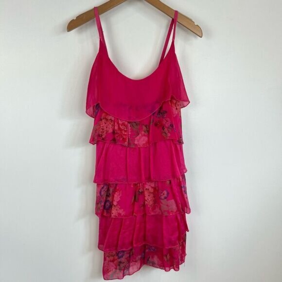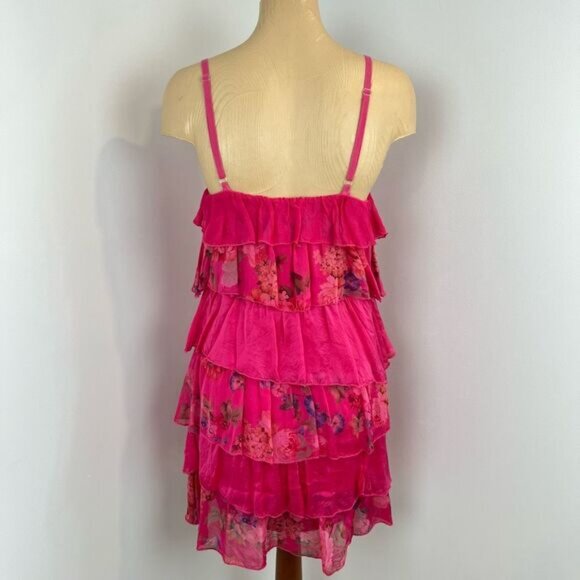 Vintage Bella Amore Women's Small Pink Ruffled Tiered 100% Silk Mini Dress Italy