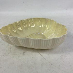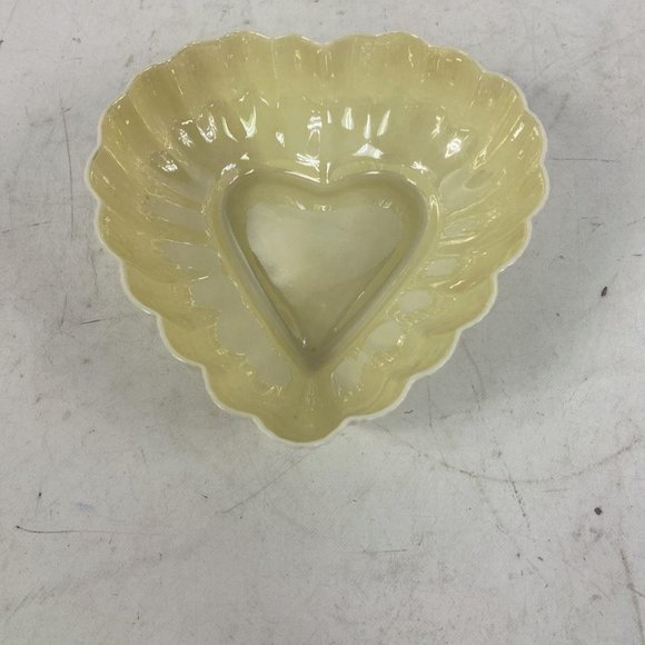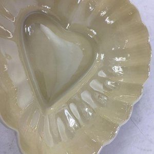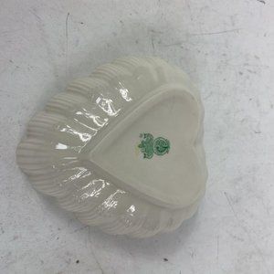 Vintage Belleck Irish Porcelain White Heart Shaped Green Stamped Dish Plate.