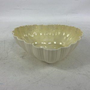 Vintage Belleck Irish Porcelain White Heart Shaped Green Stamped Dish Plate