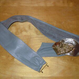 This buckle is large and a bit on the heavy side. It is made of brass, copper and perhaps stainless? - colors are copper, gold and silver. It measures 4.5" across and 3" high. I will include the belt.