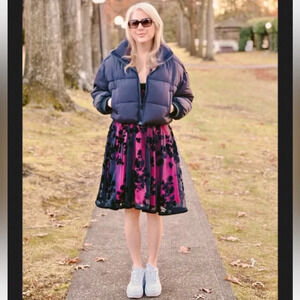 Betsey Johnson Black Floral Velvet overlay on Burgundy Satin w Velvet Trim