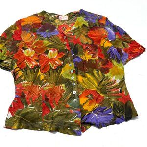 Vintage Betty Barclay, Tropical Print Down Button Down Shirt
