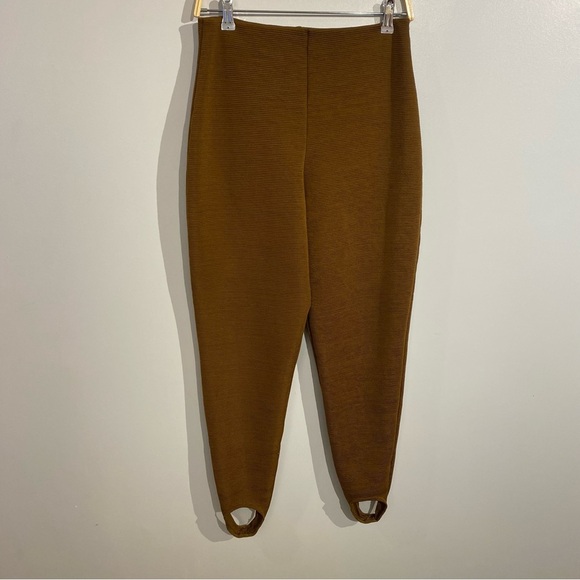 Vintage ribbed knit stretchy leggings with stirrup heel in a nice brown colour .