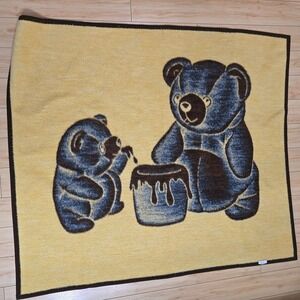 Vintage Biederlack Reversible Blanket Teddy Bear with Honey Pot Throw USA
