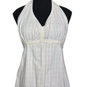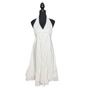Vintage Billabong Halter Dress: White Cotton Boho Coastal Cowgirl Midi