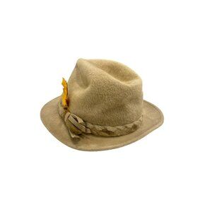 Vintage Biltmore Panda Dry Bone Size 7 Tan Beige Canadian Feather Woven Hat
