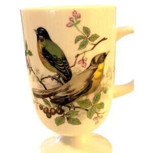 Vintage Bird Pedestal Footed Japan Coffee Mug Tea Cup White D Ring Handle