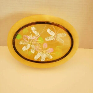 Vintage Birks Onyx oval Jewlery box/trinket dish with removable lid,handpainted flowers .