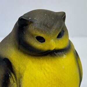 Vintage Bisque Ceramic Fat Owl Figurine Yellow and Grey *read*