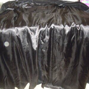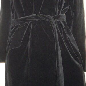 Vintage Black 100% Cotton Velvet Maxi Long Coat Opera Trench Belted MEDIUM