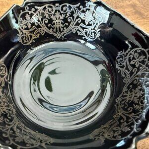 Vintage Black Amethyst Etched Glass Bowl and Plate Set Elegant Art Deco Serving
