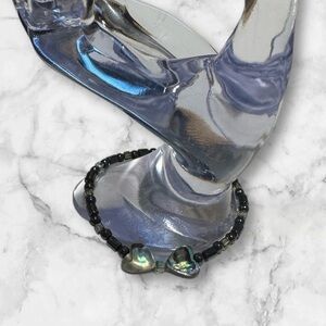 💟💎Vintage Black Beaded Bracelet with Shell Heart Accents
