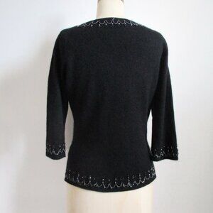 1990s vintage black beaded cardigan made in Hong Kong for Marks & Spencer.