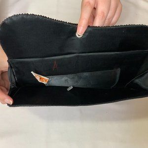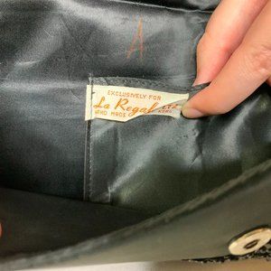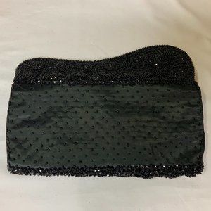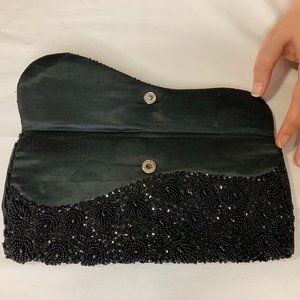 Black beaded clutch. Exclusively for La Regale Ltd. Handmade in Hong Kong. Condition: missing a few beads on the back.
