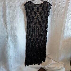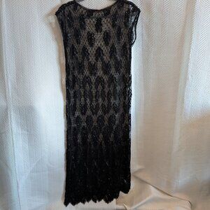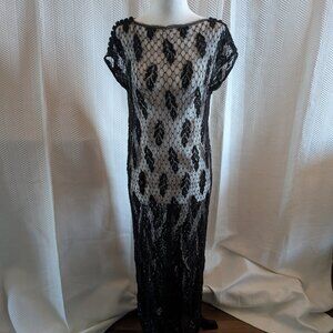 vintage evening gown, sheer lace dress, beaded formal dress, black maxi dress, naked dress trend, red carpet style, gala outfit, old Hollywood glam, statement dress, cocktail gown, elegant vintage, Holt Renfrew style, sleeveless gown, embroidered hem, 80s vintage, 90s fashion, couture-inspired, formalwear, luxury vintage, timeless fashion, unique occasion dress, designer look, fashion collector, rare vintage find, Statement dress