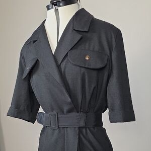 Vintage Black Belted Utility Dress β No Label β Classic Safari-Inspired Silhouet