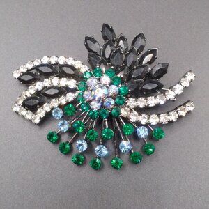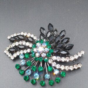 Vintage Black ,Blue ,Green and clear Rhinestone AB Brooch