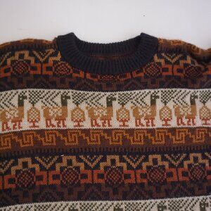 Vintage Black Brown Aztec Biggie Cosby Eclectic Grandpa Knit Crewneck Sweater XL