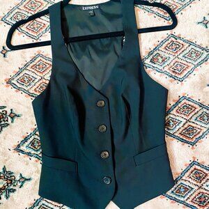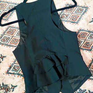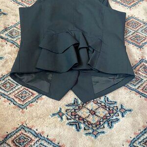 Vintage Black Button-Front Suit Vest with Ruffled Back Detailing - Size 0