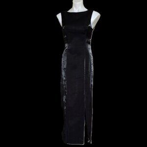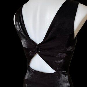 Vintage Black / Charcoal Silver Metallic Maxi Dress; Shimmery; Cutout Back; Sz 2