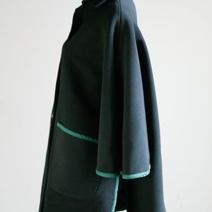 Fantastic, super chic, black hunting cape with green trim large patch pockets.