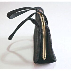 For your consideration is a vintage black cloth purse and leather change purse, circa 1940's.
