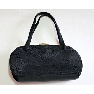 Vintage Black Cloth Purse & Leather Change Purse Spiral Cording 1940's