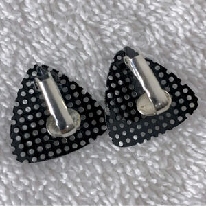 Vintage Black Coated Metal Mesh Triangle Clip On Earrings