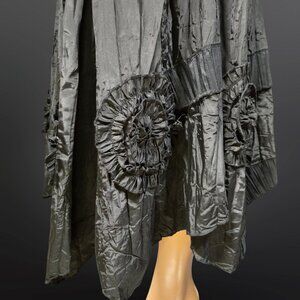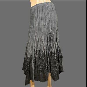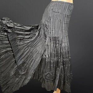 Vintage Black Crinkled shiny Maxi Skirt With Rosettes Size XS Gothic Witchy Vamp