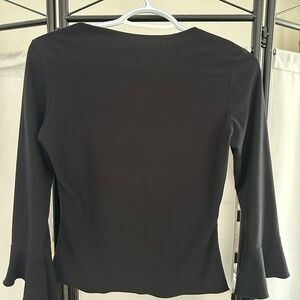 A closet staple! This black blouse features a soft, flowy fit and subtle flare sleeves for a touch of elegance 🌙. Dress it up with slacks or keep it casual with denim—it’s the ultimate go-to piece for any season.