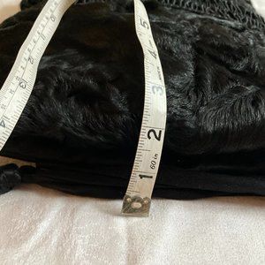 Vintage Black Fur Satin Hand Warmer Muff Bag Clutch Wristlet, Zip Pocket MINT