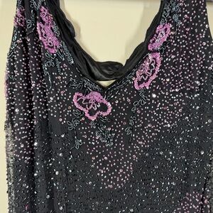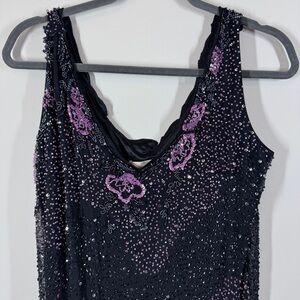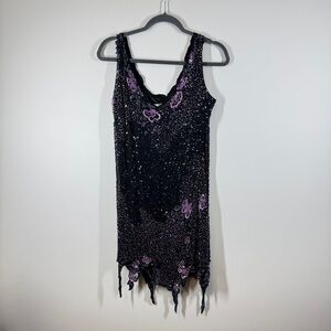 Vintage Black Gothic Y2K Butterfly Sequin Beaded 100% Silk Dress No Sz TAG