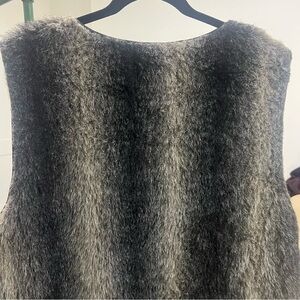Vintage Black Gray Brown Faux Fur Vest One Size Plus Size Tall Chunky Open Vest