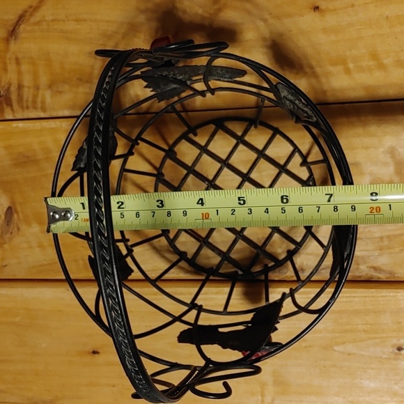 Vintage Black & Green Metal Wire Basket with leaves and apples