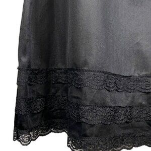90s black lace nylon slip skirt