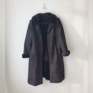 Vintage Black Leather Attic Shearling sheepskin Coat
