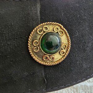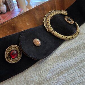 Vintage Black Leather Belt with Gold Details & Studded with Glass Beads