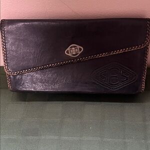This was purchased at an Estate sale we can find no information on it not the material etc. the item appears to be extremely old and in good condition It looks like the pocket inside did have a zipper at one time. Distinctive vintage smell
