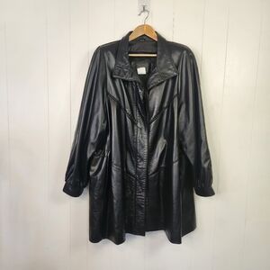 Vintage Black Leather Coat Jacket Midi 90s 1990s Womens Size 1X Loose Oversized