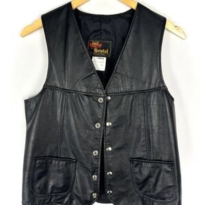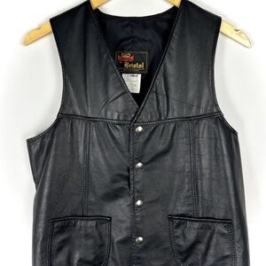 Vintage ‘Golden Crown by Bristol’ Black Leather Western Biker Vest • Snaps • Pockets • Motorcycle • Silver Buckle • Montreal Canada
